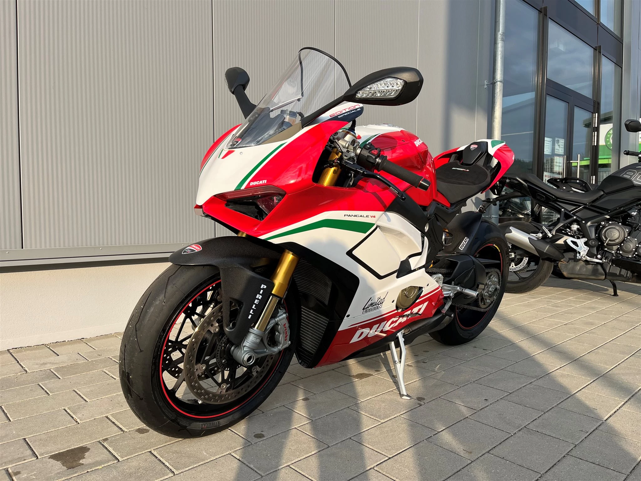 Die Panigale V4 Speciale ist weit mehr als nur ein Motorrad; sie ist ein Sammlerstück. Mit ihrer exklusiven "Speciale"-Lackierung und der technischen Nähe zur Desmosedici GP markiert sie einen Wendepunkt in der Geschichte von Ducati. Dieses Exemplar mit einer extrem geringen Laufleistung von nur 5.625 km wurde mit hochwertigsten Komponenten weiter veredelt. Die Panigale V4 Speciale war limitiert auf 1.500 Stück weltweit.