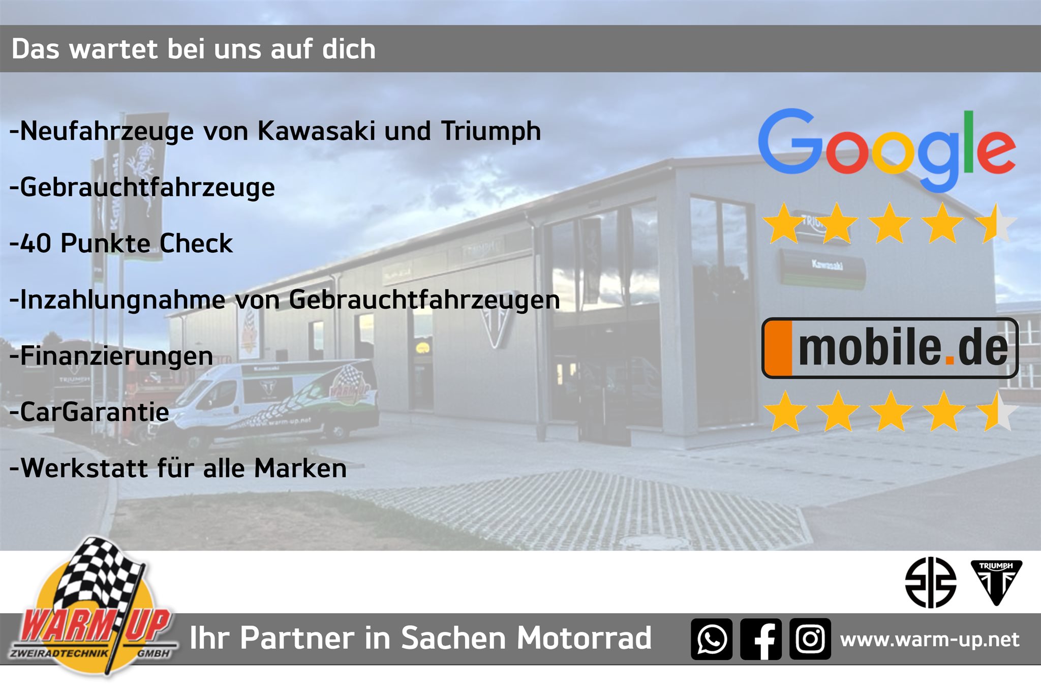 Vertragshändler für Kawasaki und Triumph mit über